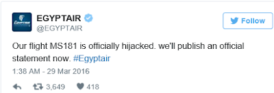 Egypt’s civil aviation minister said the hijacker had not issued any "concrete” demands and that it was not clear whether the hijacker’s claims that he had a suicide vest were true.